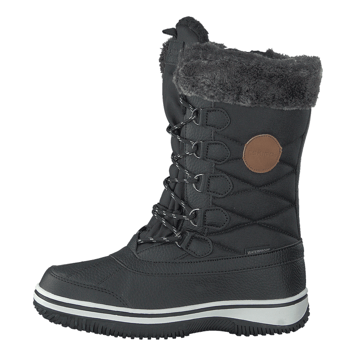 Mrazivé boty pro děti jsou vysoké boty se syntetickým materiálem a textilním vnějším povrchem. Barva kozaček je černá. Tato bota má špičkovou kategorii bot.