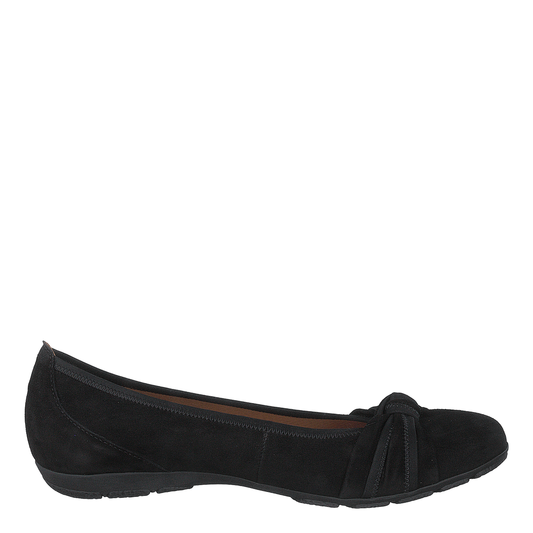 Mit einer hochwertigen Innensohle aus Leder und einem Obermaterial aus strapazierfähigem Wildleder sind diese femininen schwarzen Ballerinas garantiert langlebig. Schlüpfen Sie in Ihre Lieblings-Skinny-Jeans, Strumpfhosen und Tunika.