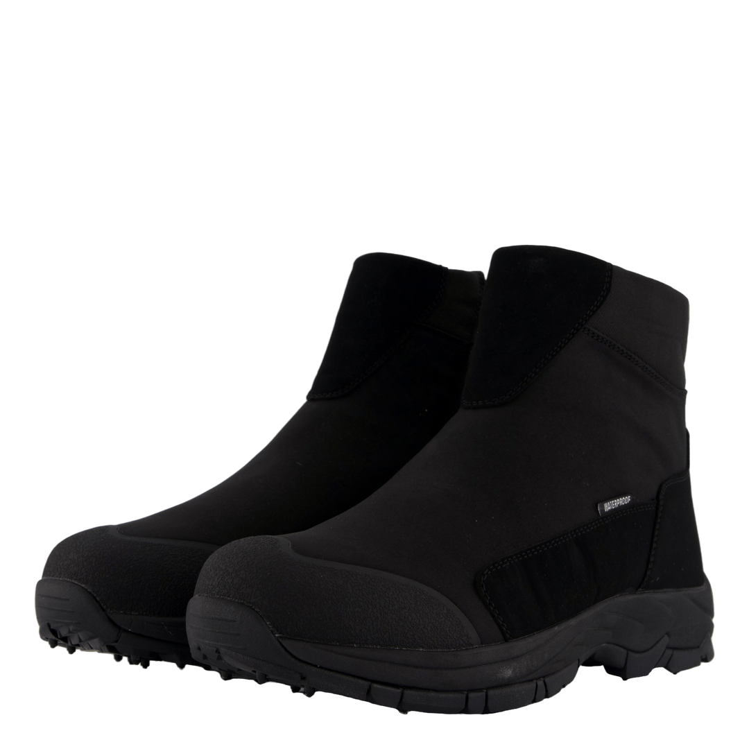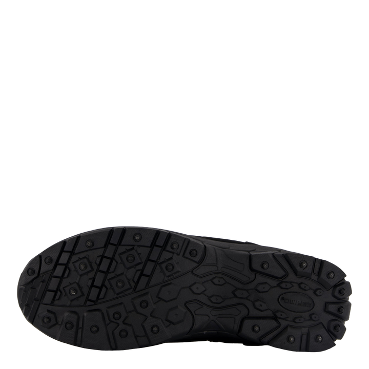 Eskimostiefel aus wasserdichtem Textil am Obermaterial. Er hat ein warmes Synthetikfutter und eine Innensohle. Reißverschluss am Obermaterial für einfaches An- und Ausziehen. Die Sohle hat 16 Wolframstollen und 15 Gummistollen. Diese Stahlstollen ermöglichen normales Gehen auch auf Eis und Matsch. Die Gummistollen hingegen helfen bei Rutschgefahr, zum Beispiel auf harten Böden wie in Geschäften.