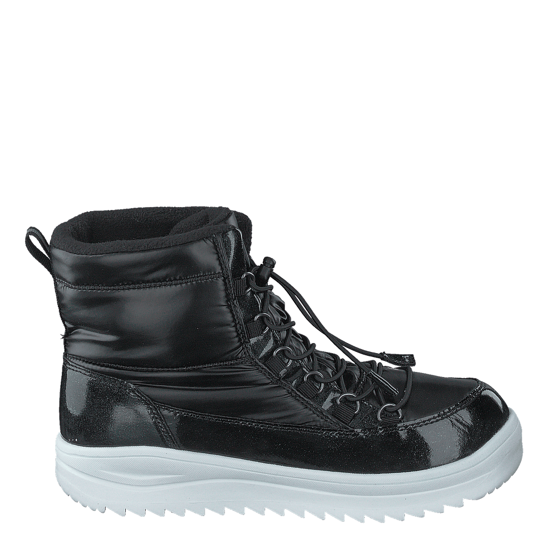 Nickby is a shiny fashionable high winter boot with a chunky and spiky outsole. Treated with waterproof ITC technology to keep the feet dry. Teddy lining for extra comfort during cold weather. Elastic laces with drawstring for an adjustable quick entering. Reflective patch on heel for visibility. Midsole made of 70% recycled PET.
