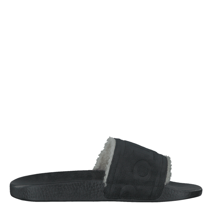 Faux-Shearling–Lined Suede Slide Black