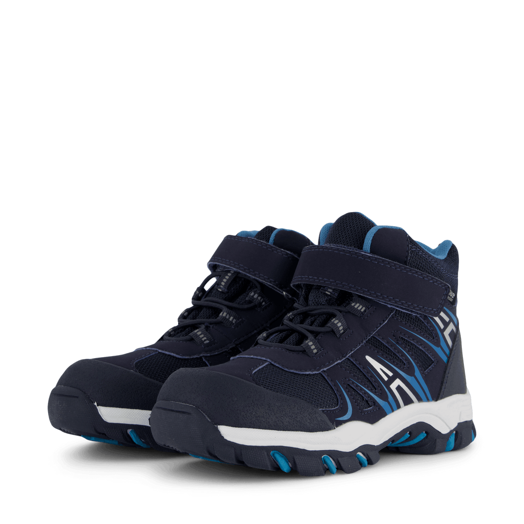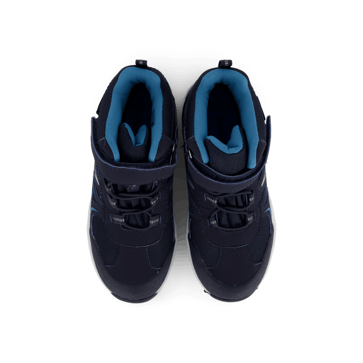 Scarponcino da bambino sportivo e leggero impermeabile con lacci elastici e velcro. Stile caldo in tessuto e con un sottopiede staccabile.