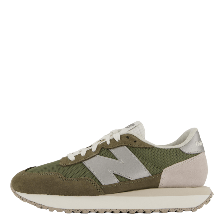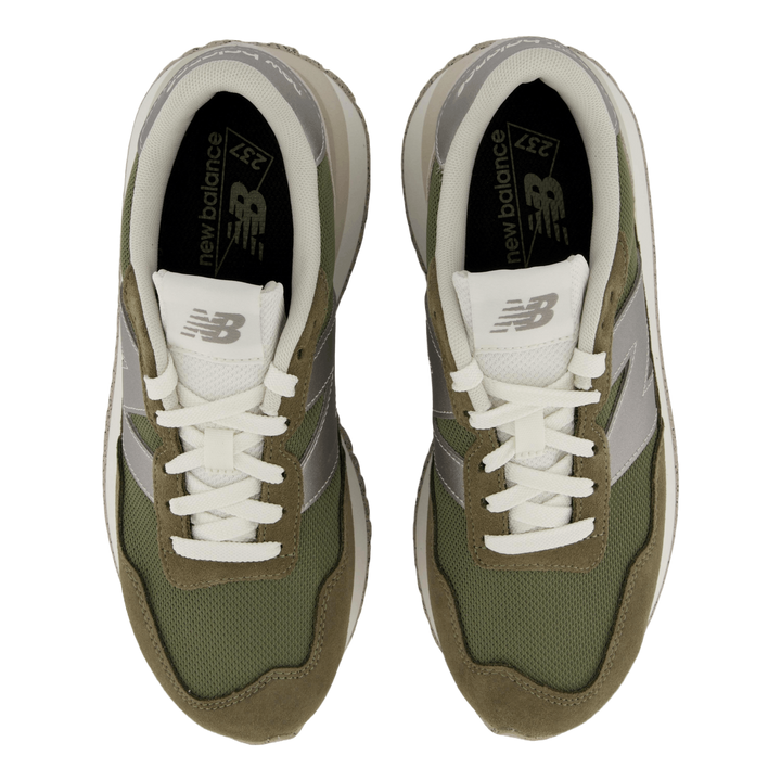 New Balances 237 tar designhenvisninger fra 1970-tallets arkivfavoritter, og kombinerer arvpåvirkninger med et moderne syn. 237 bruker en EVA-mellomsåle, sildbein-yttersåle og strømlinjeformet overdel som et klassisk startpunkt, med moderne blomstrer som overdimensjonert N-merke, utvidet mellomsålelengde og gator-inspirert foxing og mudguard som tilbyr en moderne versjon av tiåret da joggesko virkelig satte sitt preg. for første gang. Eksperimentell i ånden, men likevel lett tilgjengelig, er 237 et villedende enkelt, moderne statement-stykke.